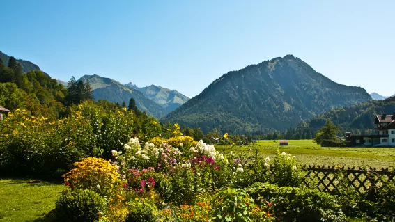 Ein Kleinod am südlichen Ortsrand mit herrlichem, unverbautem Blick auf die Berge und über blumige Wiesen.