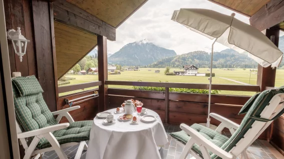 Hochwertige Ausstattung der Wohnungen bspw. mit hochlehnigen, verstellbaren Kettnerstühlen mit dicken, weichen Polsterauflagen, echten Schaffellen in den Wohnungen und Sonnenschirmen auf den Balkonen